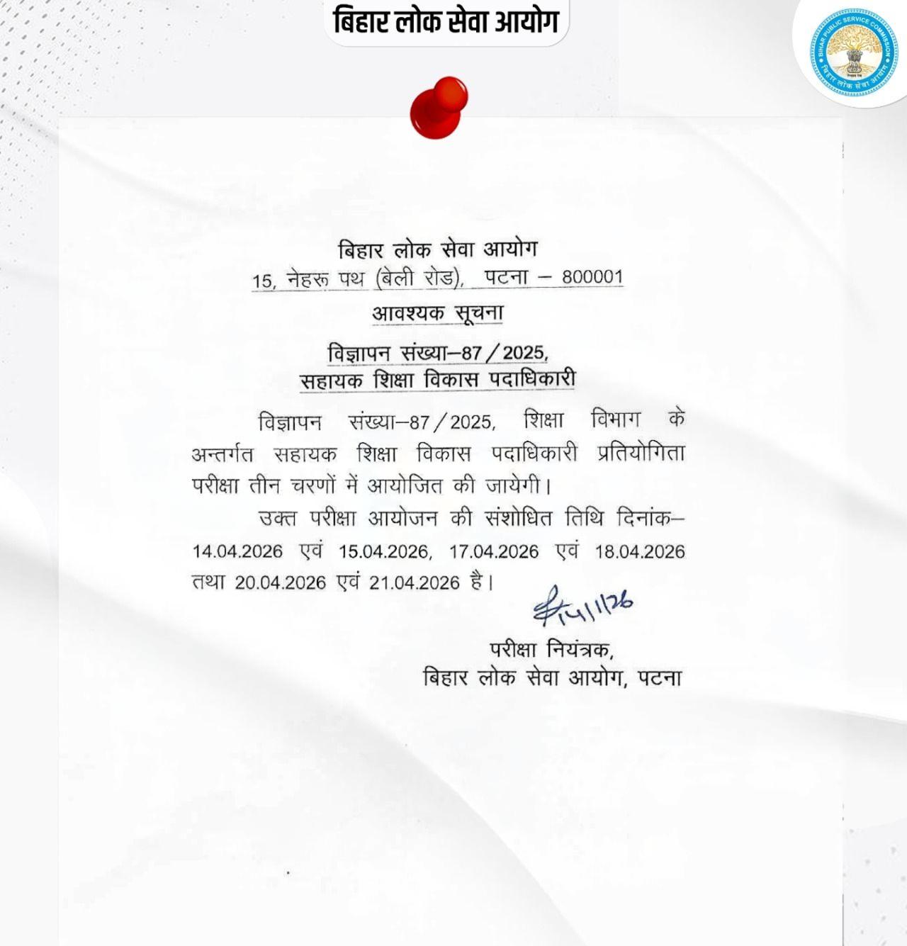 BPSC AEDO Admit Card 2026 Date – Important Date